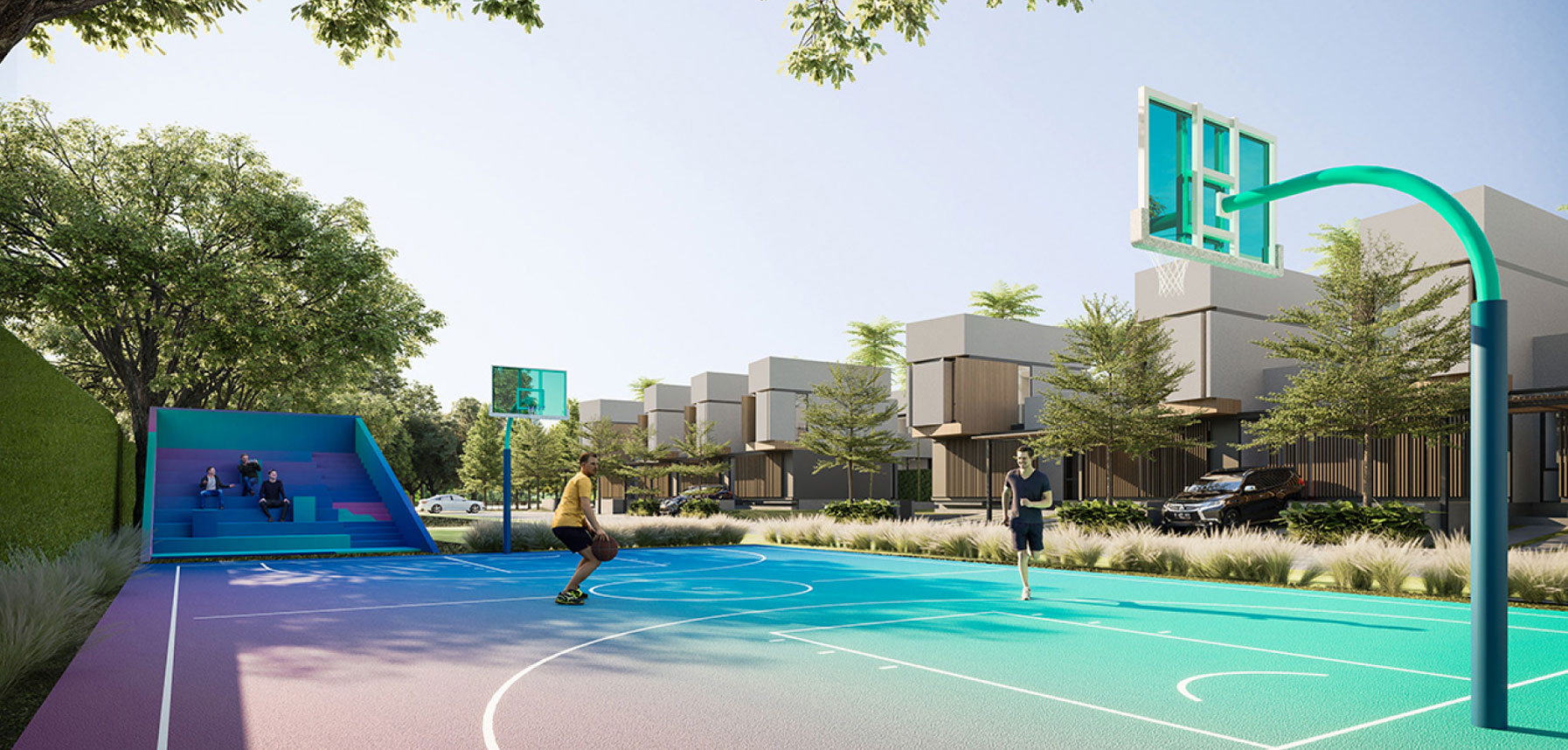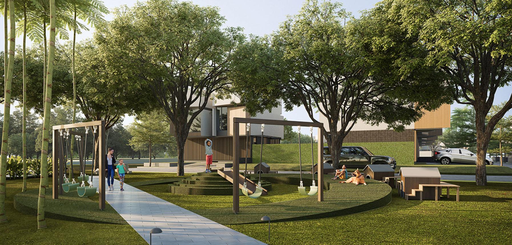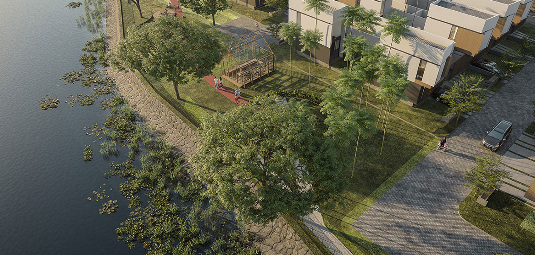 A tropical villa-style home amidst the hustle and bustle of city life. Beautifully situated in the south of Jakarta, Earthville ticks your family's boxes. A neighborhood equipped with a 70% open-air environment, a basketball court and riverside jogging track, a children's playground and camping site, even a pet's park for our furry friends.