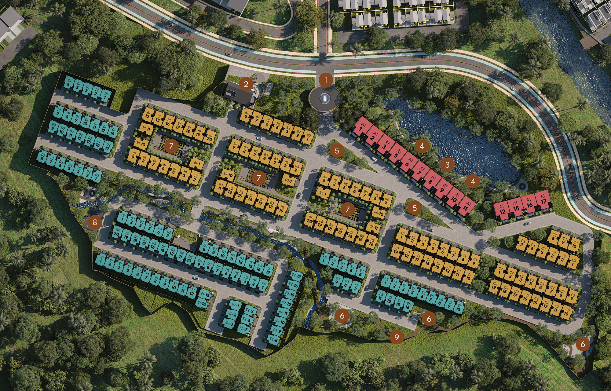 Harvest Ville's natural beauty is elevated by its serene Riverside Park, which runs alongside the tranquil river winding through the cluster. Whether jogging by the water, enjoying a family picnic, or simply taking in the surroundings, Riverside Park provides a perfect blend of nature and leisure at the community's heart.